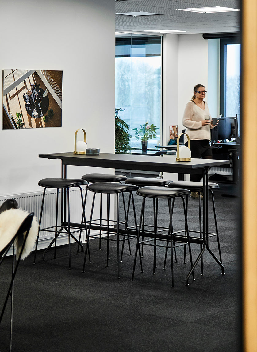 At indbygge et hæve-sænkebord i dit kontor kan skabe et praktisk sted til hurtige måltider, kaffepauser og afslappede diskussioner.